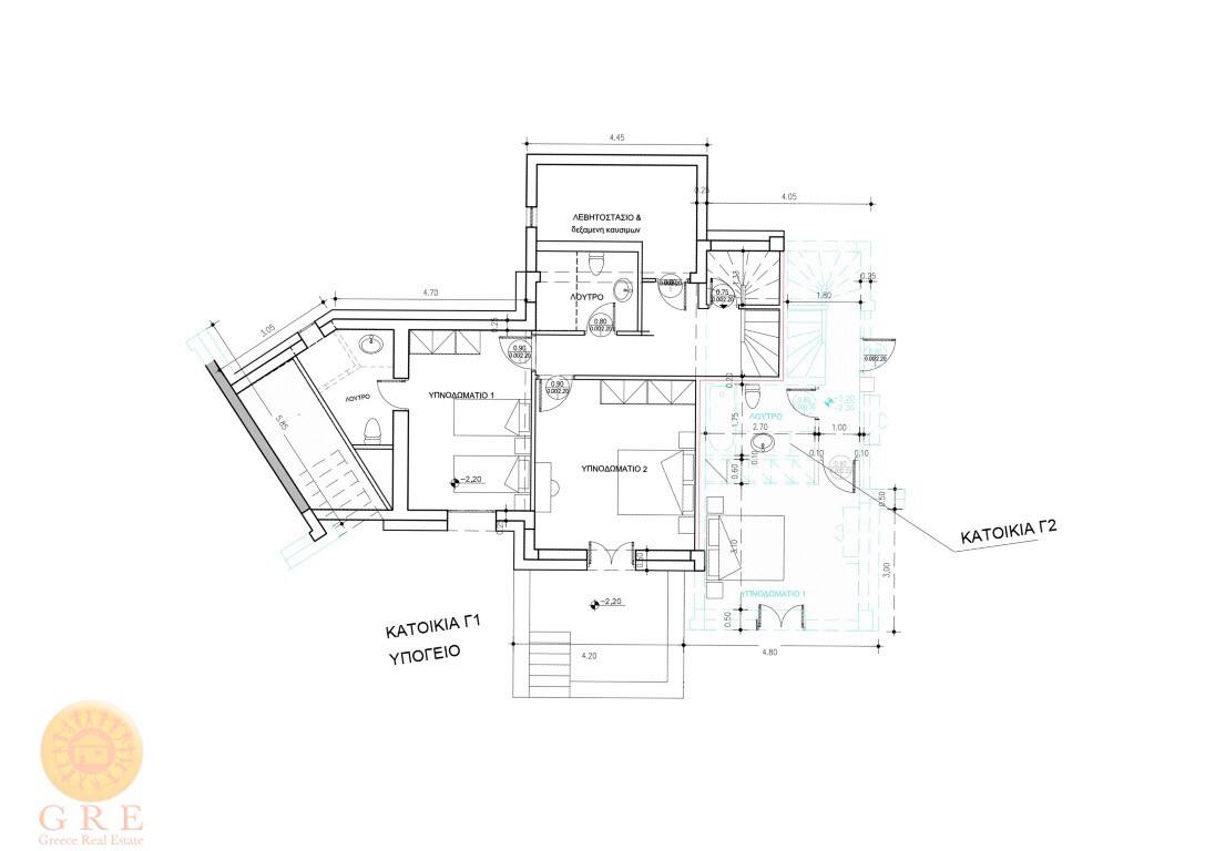 במפלס הראשון (מרתף למחצה) ישנם 2 חדרי שינה גדולים, 2 חדרי רחצה גדולים וחדר דוודים, ממפלס זה תוכלו ללכת לחצר ולבריכת השחייה ודרך גרם מדרגות פנימי לקומה הראשונה.