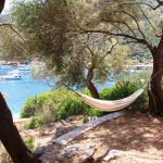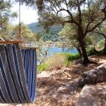 גינה מטופחת עם עץ זית גדל עם גישה לים, אפשר להירגע בערסל מול הים.