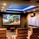 חדר קולנוע אחד עם 99" מסך מקצועי מקרן LED HD גם בתור HD מלא, 5.1 מערכת קול.