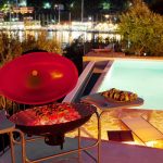 בריכת שחייה פרטית בגודל (4m x 9m) ומקלחת חוץ לקיץ, ברבקיו, חדר אוכל ואזור מגורים.