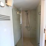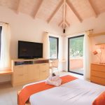 חדר שינה אחד עם מיטת קווין סייז, 46 "טלוויזיה LCD וחדר אמבטיה עם אמבטיה, מרפסת פרטית אחת עם נוף אל עבר הנמל.