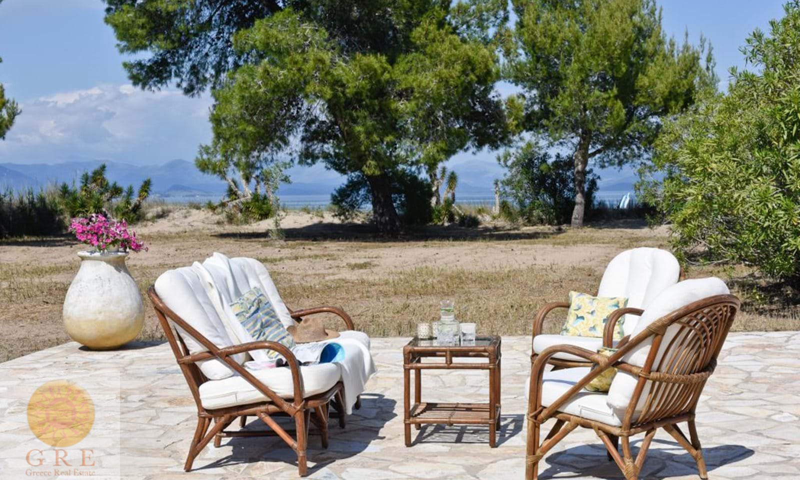 וילה זו שוכנת ממש על החוף, אחד החופים החוליים הארוכים הבודדים שנמצאים בחוף המזרחי של קורפו.