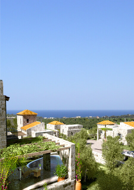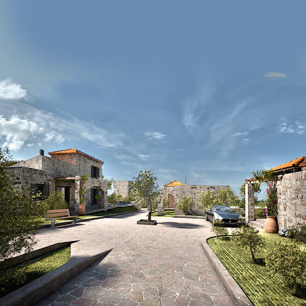 הקומפלקס ממוקמם מחוץ לכפר מסורתי, במתחם 11 וילות בנויות מאבן בסגנון מסורתי, בתוך גן ציורי עם בריכות פרטיות, מוקפות בעצי זית, הוילה בעלת קומה אחת עם 2 חדרי שינה.