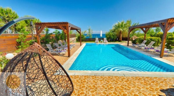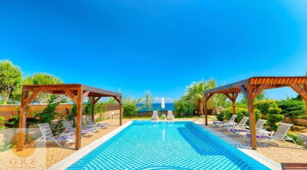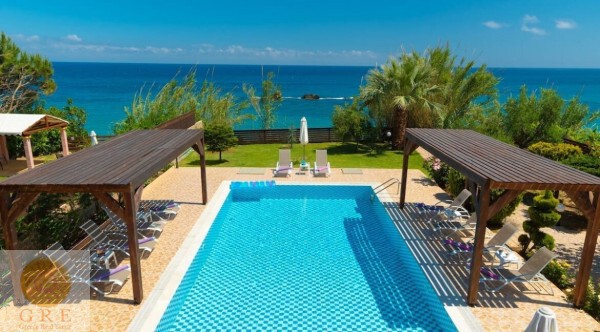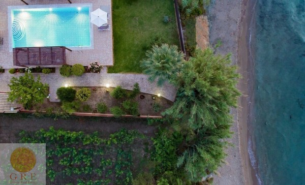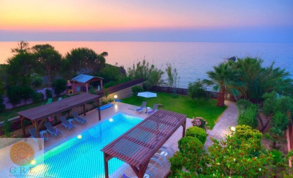 וילה עם בריכה פרטית ממוקמת על גן מטופח ומגרש דשא עם גישה ישירה לחוף הים.