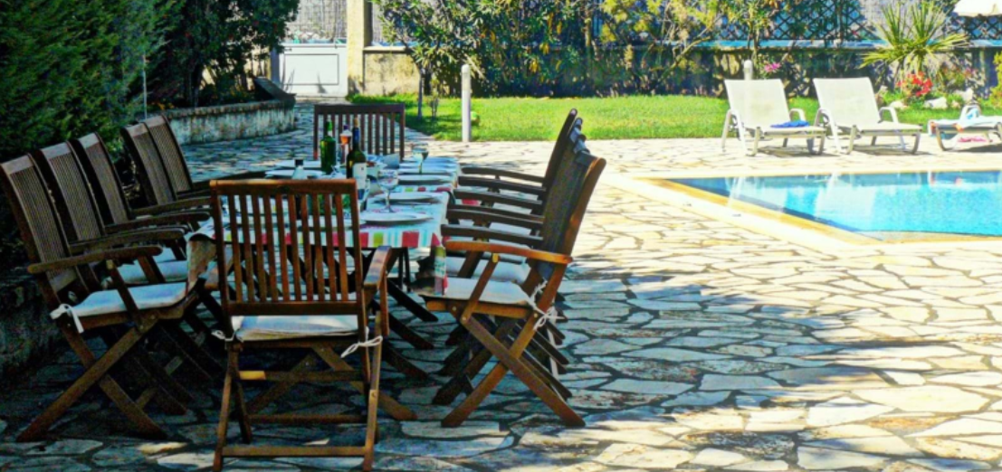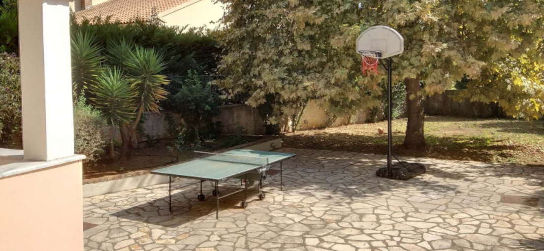 בחוץ יש בריכת שחייה גדולה בחזית עם הרבה מקום על מדשאות ופטיו לשיזוף. תחת הפרגולה היפה- מקום האידיאלי לסעודות בחוץ.
