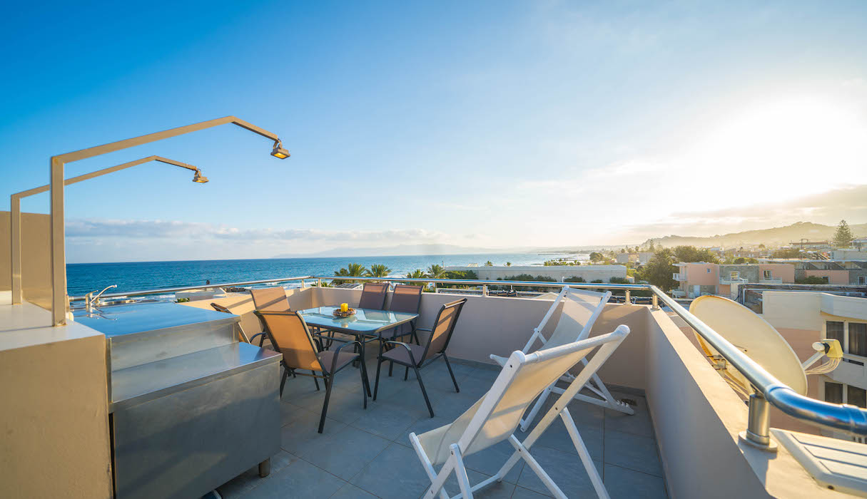 גינה פרטית של 80 מ"ר ובריכת גג מדהימה עם בר קוקטיילים ונוף לים. רק 10 מטרים מהחוף היפה של חאניה כרתים, המקום המסחרי ביותר בכרתים, ליד כל השירותים, המועדונים, המסעדות, בתי הקפה, הסופרמרקטים, החנויות וכל האטרקציות.