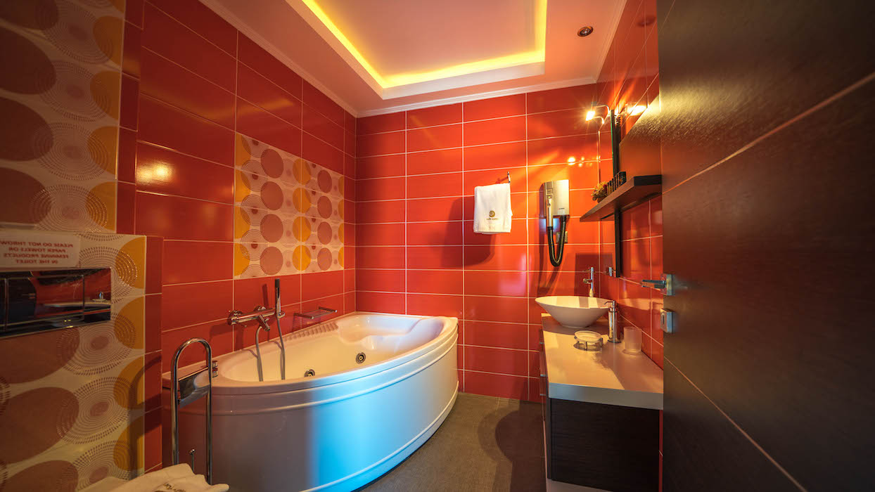 חדר השינה הראשי מציע חדר רחצה פרטי עם אמבטיה.