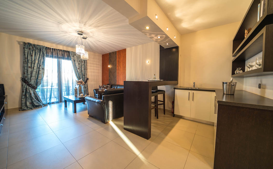 אזור טרקלין נוח ובר קיץ מוגנים כולם בזכוכית אלגנטית, המספקים את המקום המושלם לכל שעה ביום. במרפסת יש גם ברביקיו.