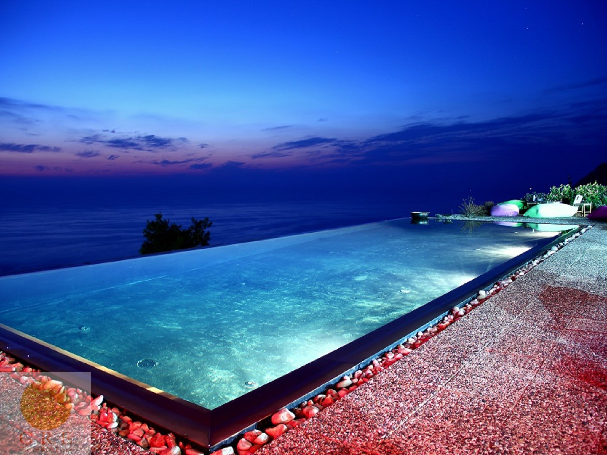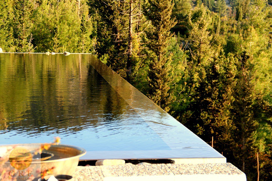 בריכת שחייה אינפנטי המתמזגת עם הים ממוקמת בתוך חלקת יער טבעית.