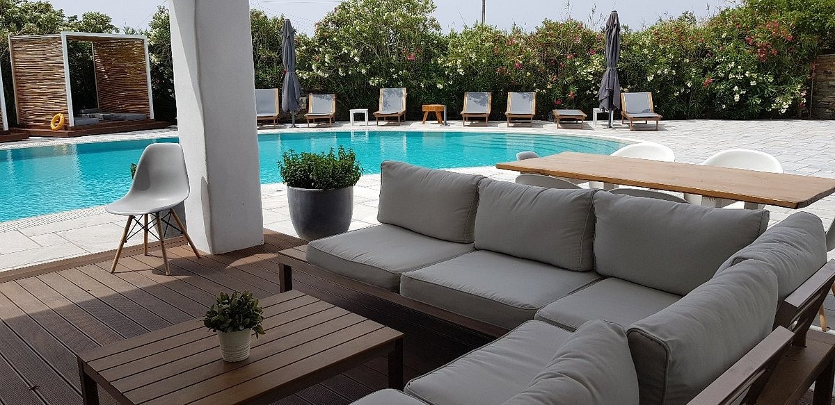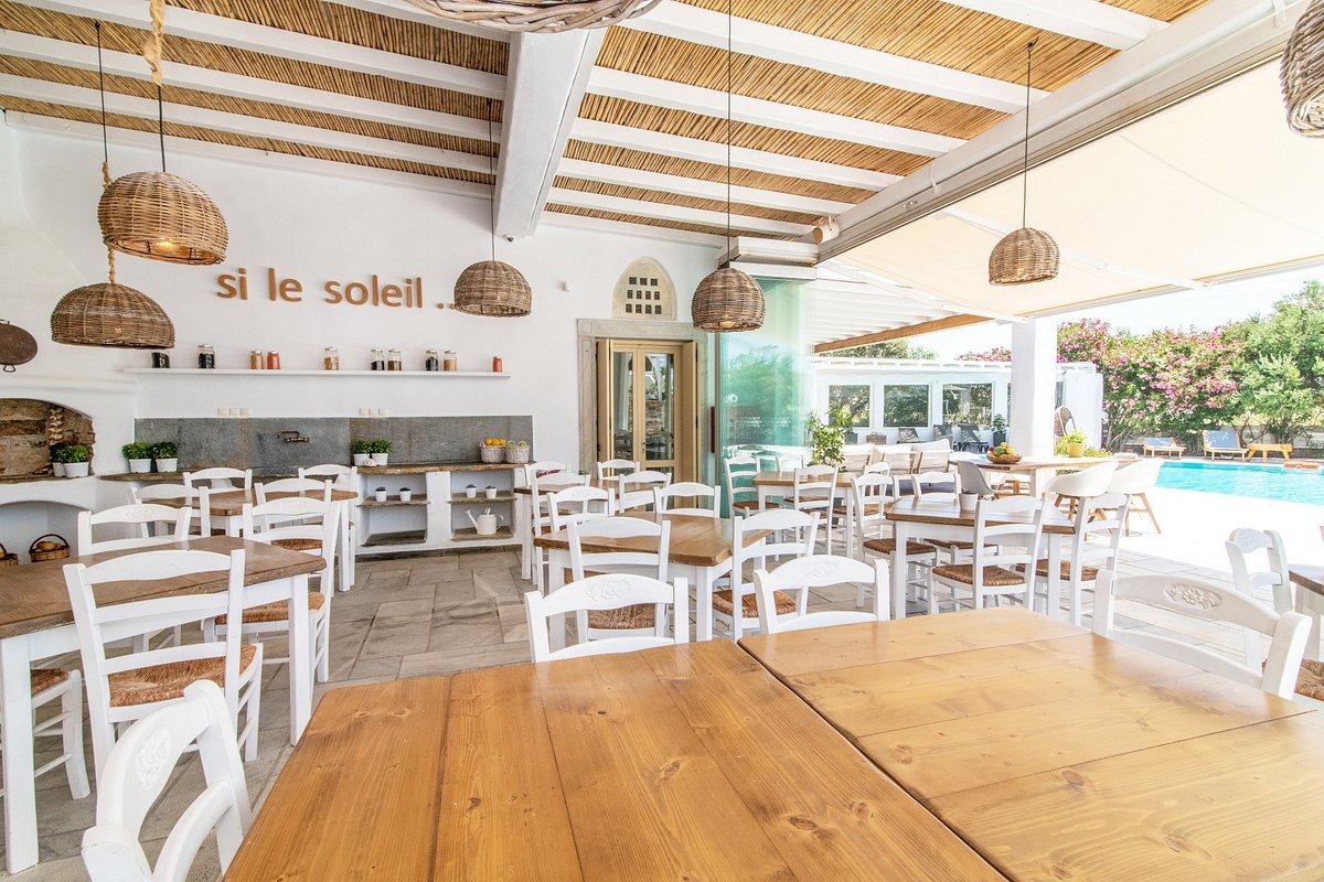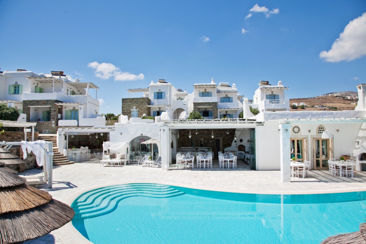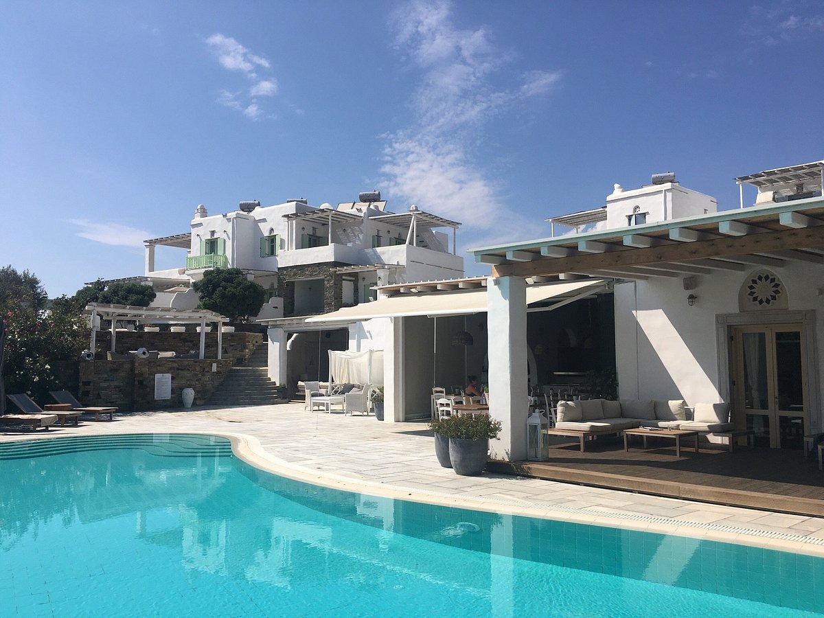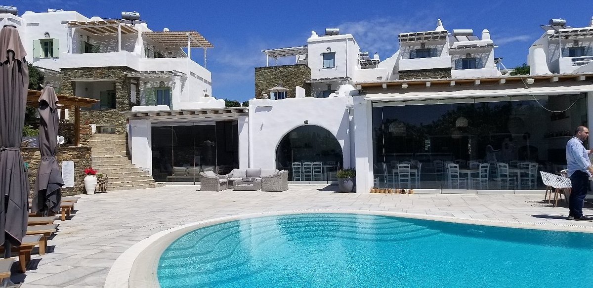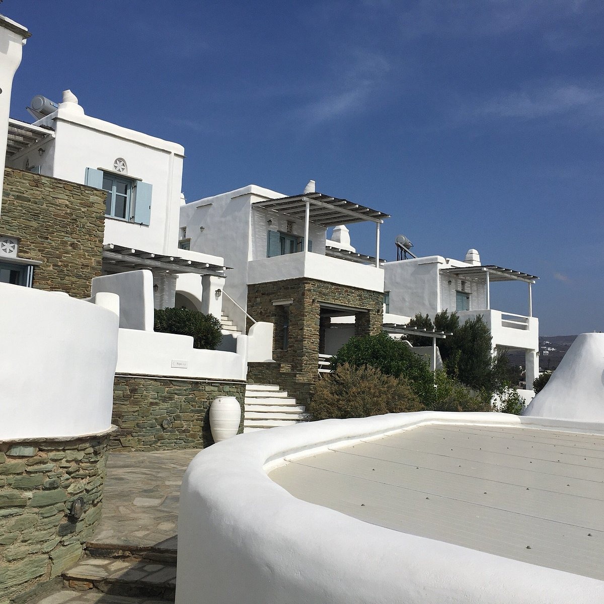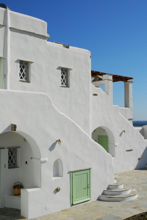 מלון מדהים בחוף בטינוס, 25 חדרים וסוויטות ג'וניור שיכולים להכיל 1-5 אנשים, בנויים ומעוצבים על בסיס הארכיטקטורה המסורתית של טינוס.