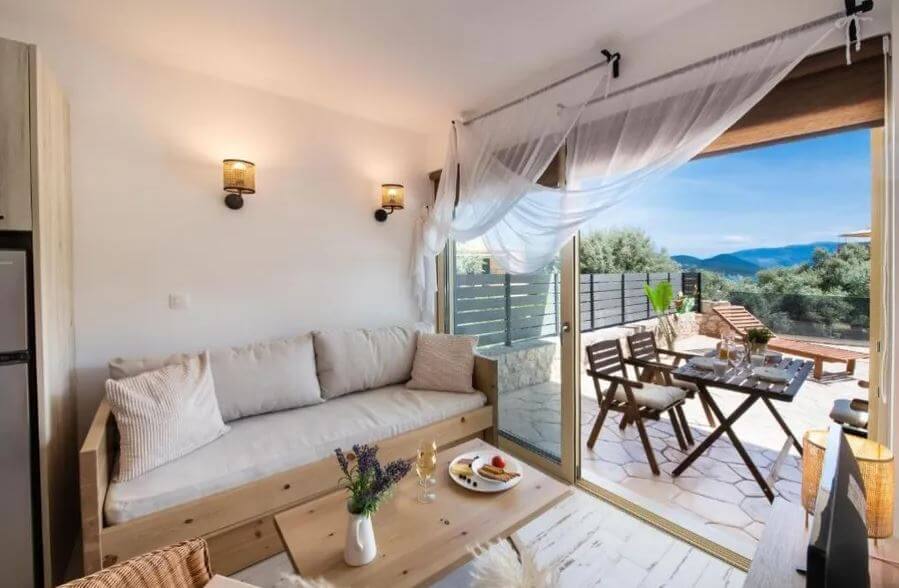 המתחם, המבטיח גם פרטיות ומגע ישיר והרמוניזציה עם הסביבה הטבעית, מרכיב אווירה של שלווה ומנוחה מוחלטים שכן הוא מוקף בגנים שופעים, עצי פרי ועצי זית המייצרים עד 250 ליטר שמן זית כתית מדי שנה.