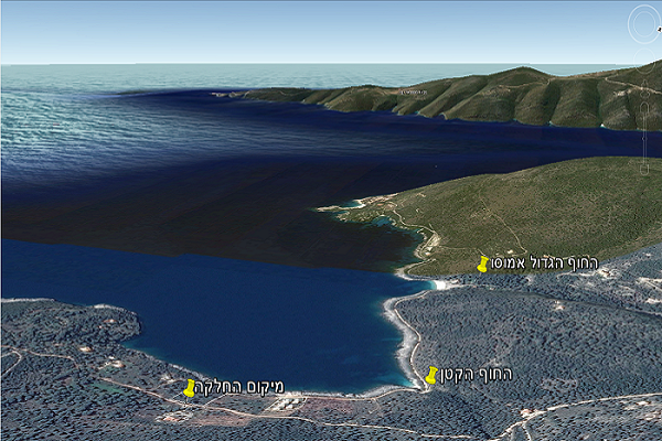 להלן מיקומה במרחב, כמו כן, תמונות של המתחם והחוף.