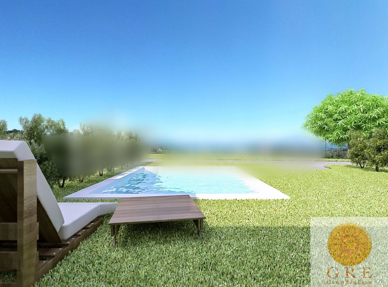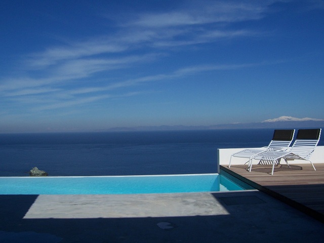 בריכת שחייה גדולה (m8.5 על 18m) ומרפסת שיזוף מרווחת.