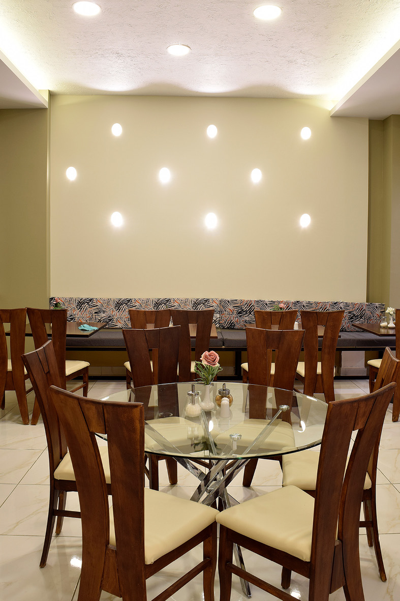 בקומת הקרקע, יש את דלפק הקבלה, אולם ארוחת הבוקר, הבר והמסעדה "Mystic" עם פטיו חיצוני.