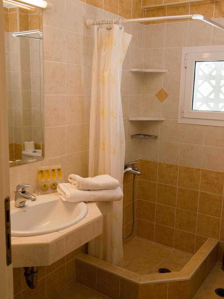 • חדר רחצה עם מקלחת ומייבש שיער