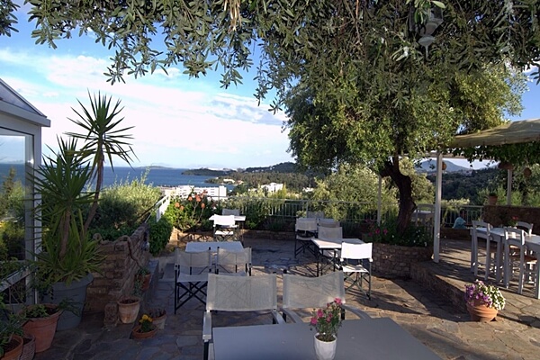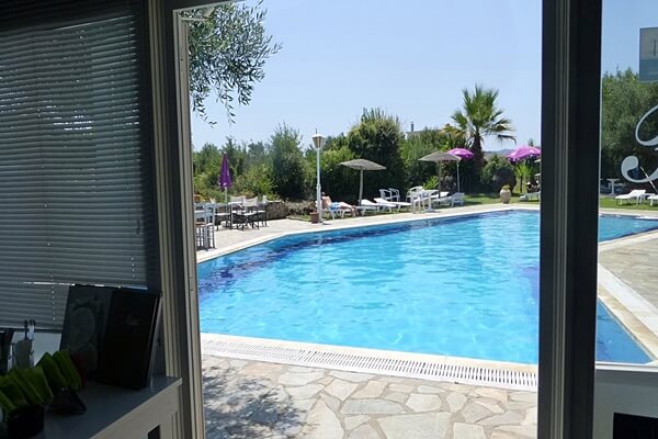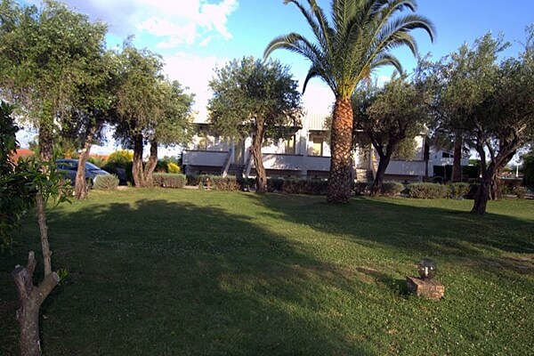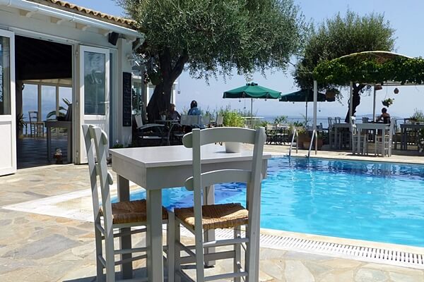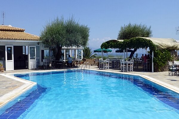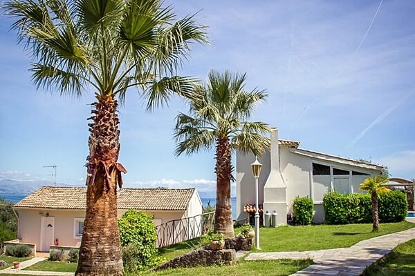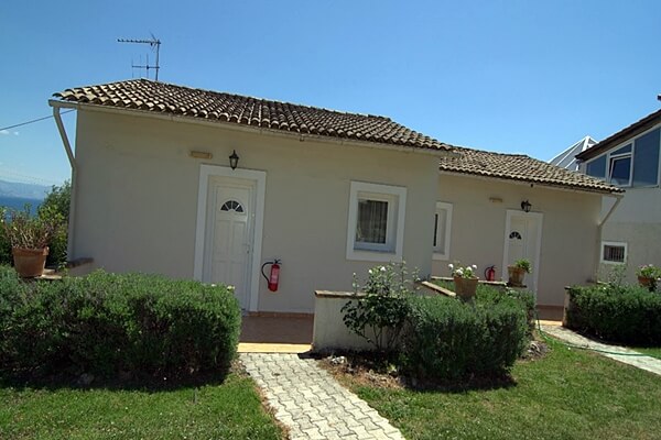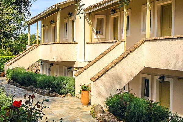 מלון דירות הממוקם על גבעה המשקיפה לים, באי קורפו שביוון.