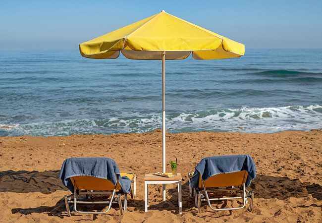 החוף החולי נמצא רק כמה צעדים קדימה ומחכה לצלילה מרעננת בימי הקיץ החמים או ליהנות מהקפה והנשנוש במיטות השיזוף.