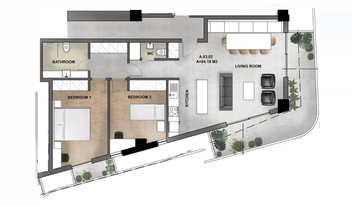 The price includes parking, storage, refrigeration and underfloor heating, kitchen cabinets and bedrooms.