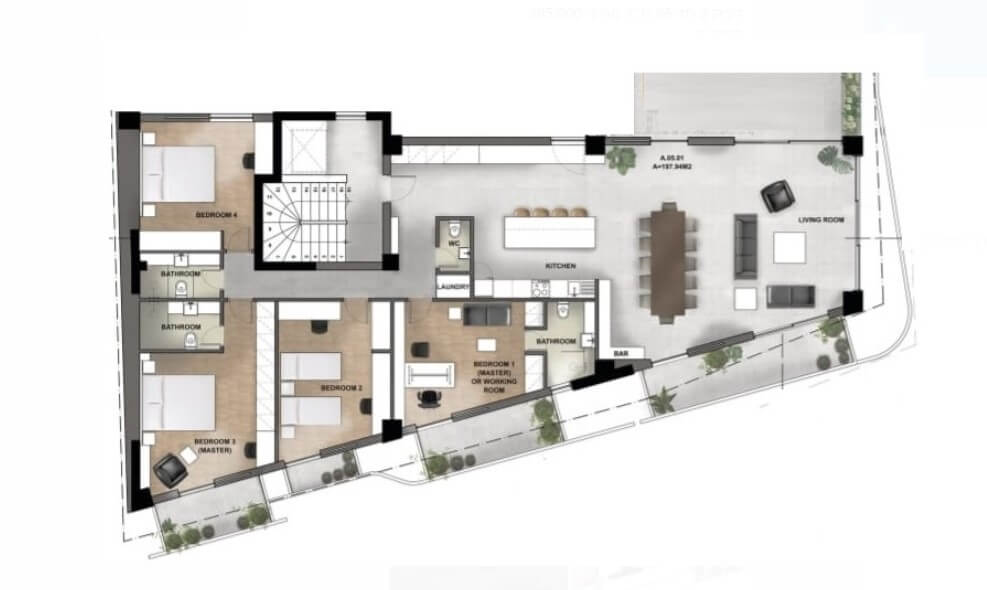 4-room apartment 200 square meters plus a 50-meter balcony with a pool, price 1,050,000 euros