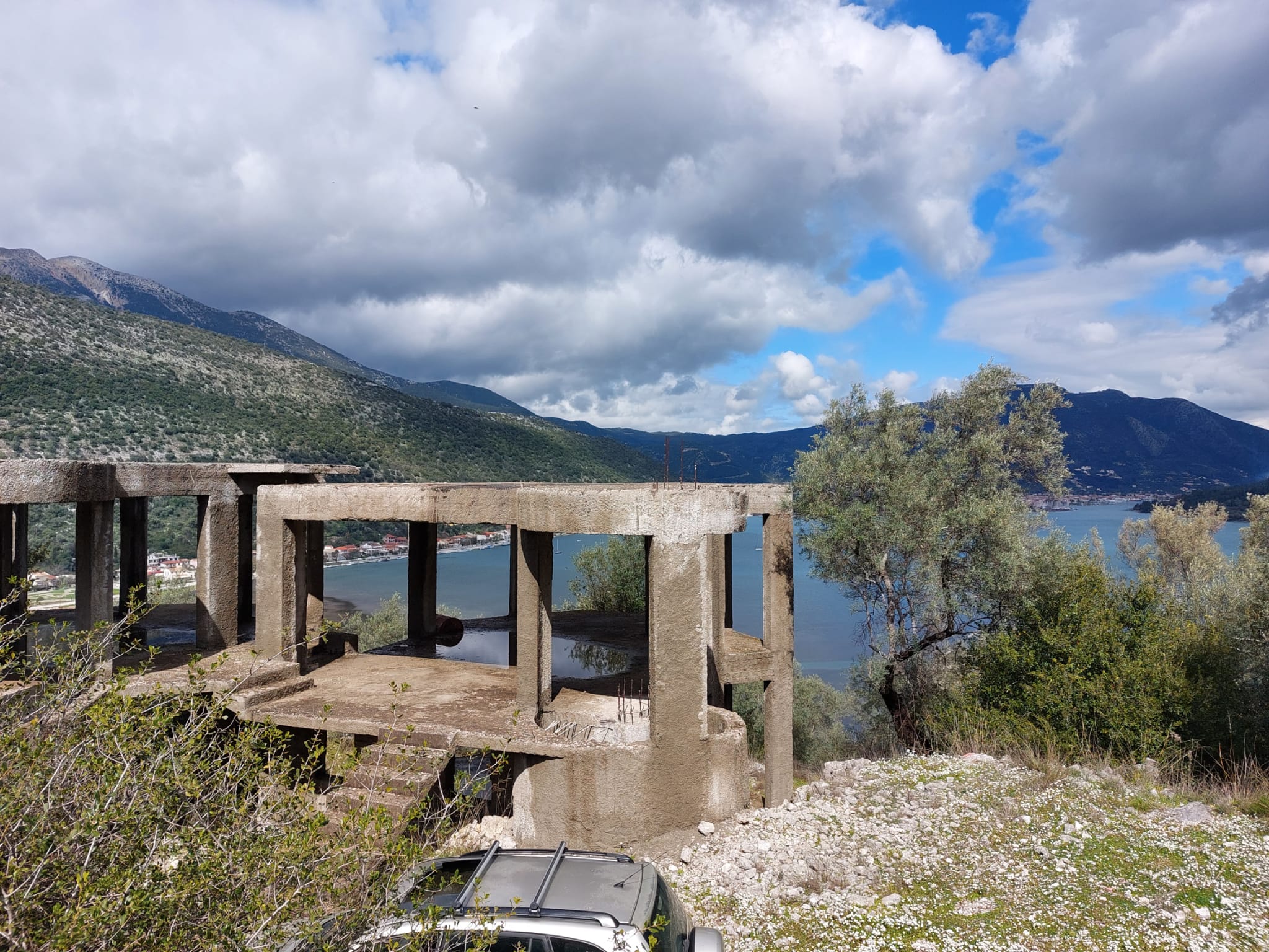 A plot of land with a skeleton for sale on the island of Lefkada, Greece.