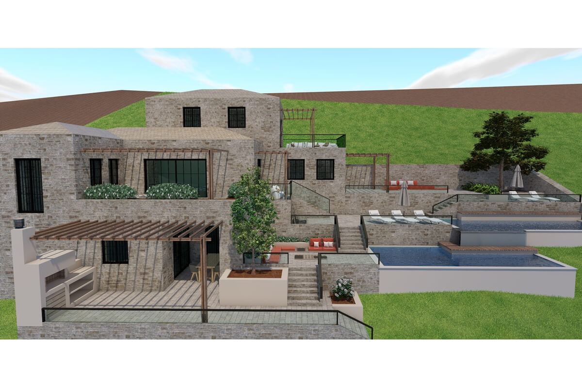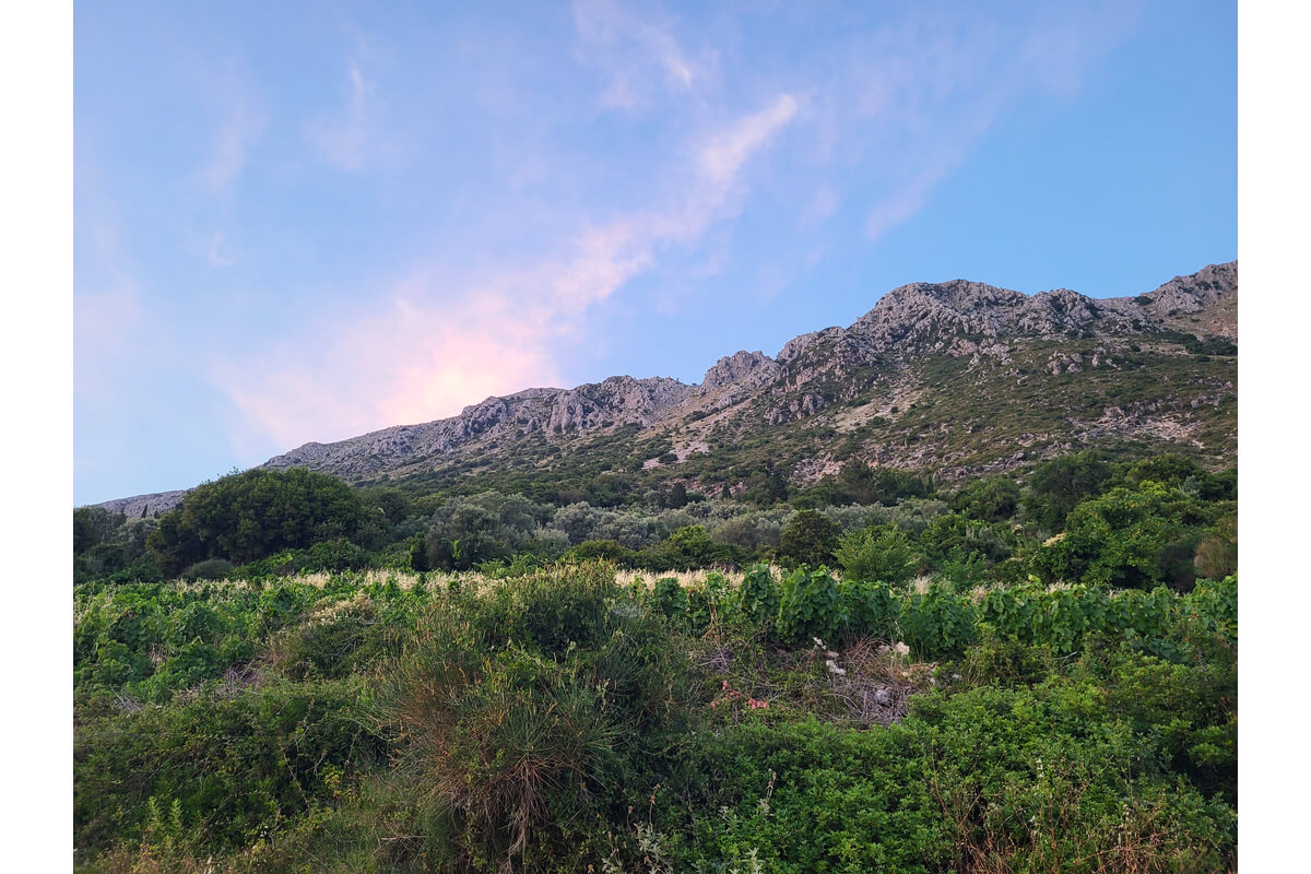 The land has a unique view of the Vasiliki Bay and the surrounding mountains.
