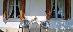 ביציאה מהסלון או מהמטבח, 2 פינות ישיבה וערסל, תנור אבן וברביקיו בגינה הקדמית.