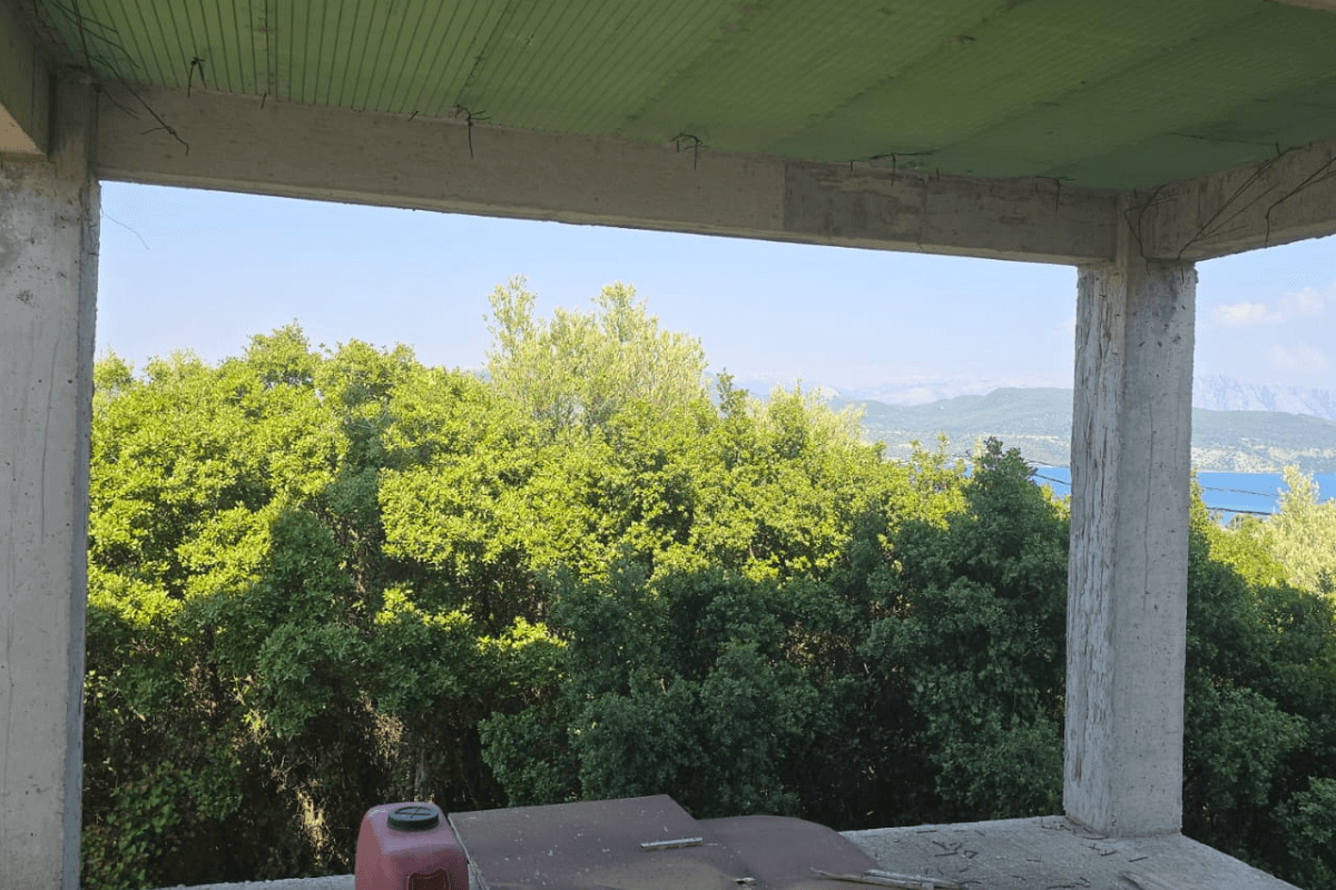 A unique property in Lefkada, including a ready-made residential house + skeleton for additional construction, with open sea views and diverse development options.