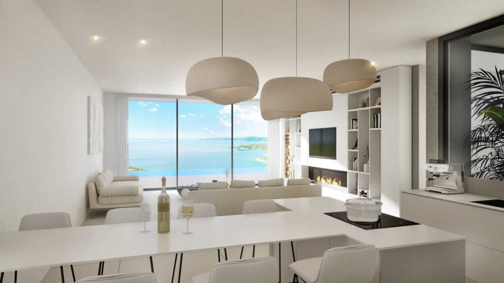 The villa has 6 double bedrooms with breathtaking views of the bay, a shower and toilet attached to each room.