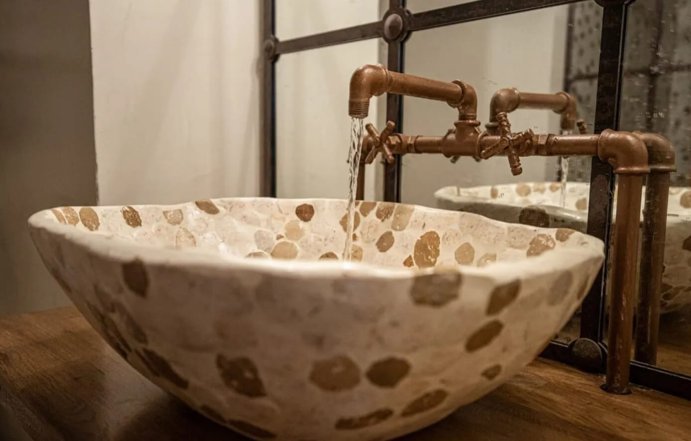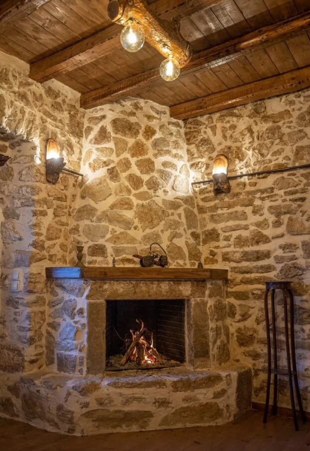 The beautiful stone fireplace and inverter air conditioners cover the building for cooling and heating.
