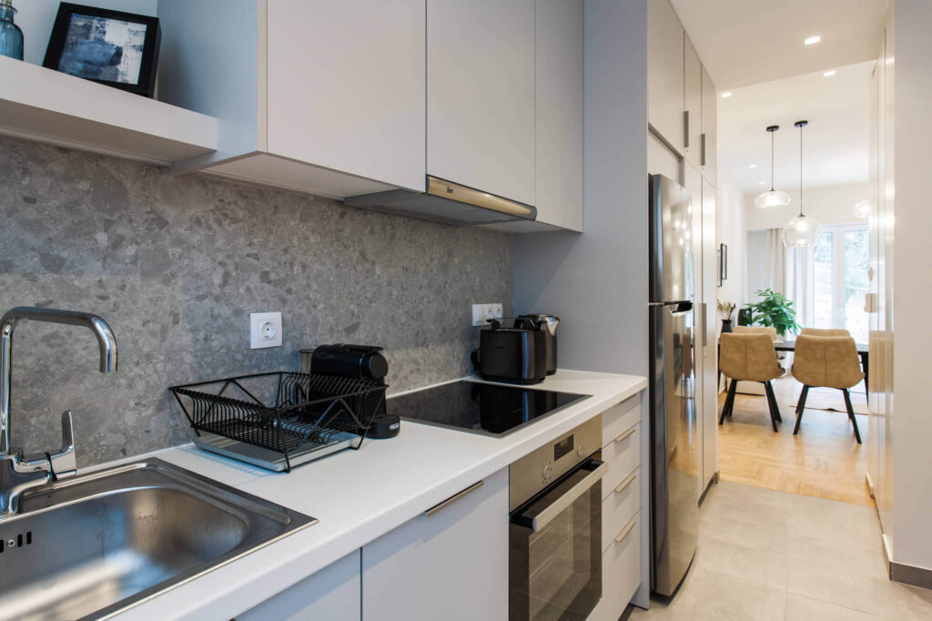 Outside, there are different seating and dining areas, under the trees and in total privacy.