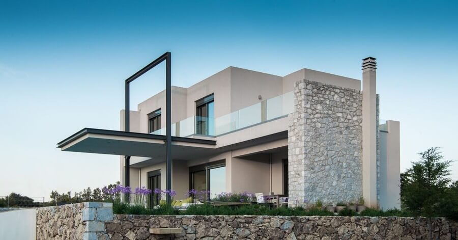 A modern villa in the Apokoronas area. The property is accessible, a dirt road that is well connected to the main road.