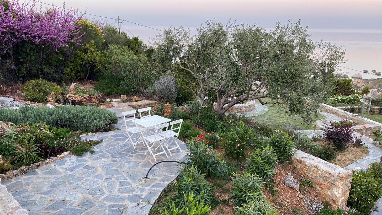 The vila area is 220 square meters, it is located on a plot of over 1,600 square meters with a breathtaking view of the Aegean Sea and a beautiful yard full of plants and terraces.