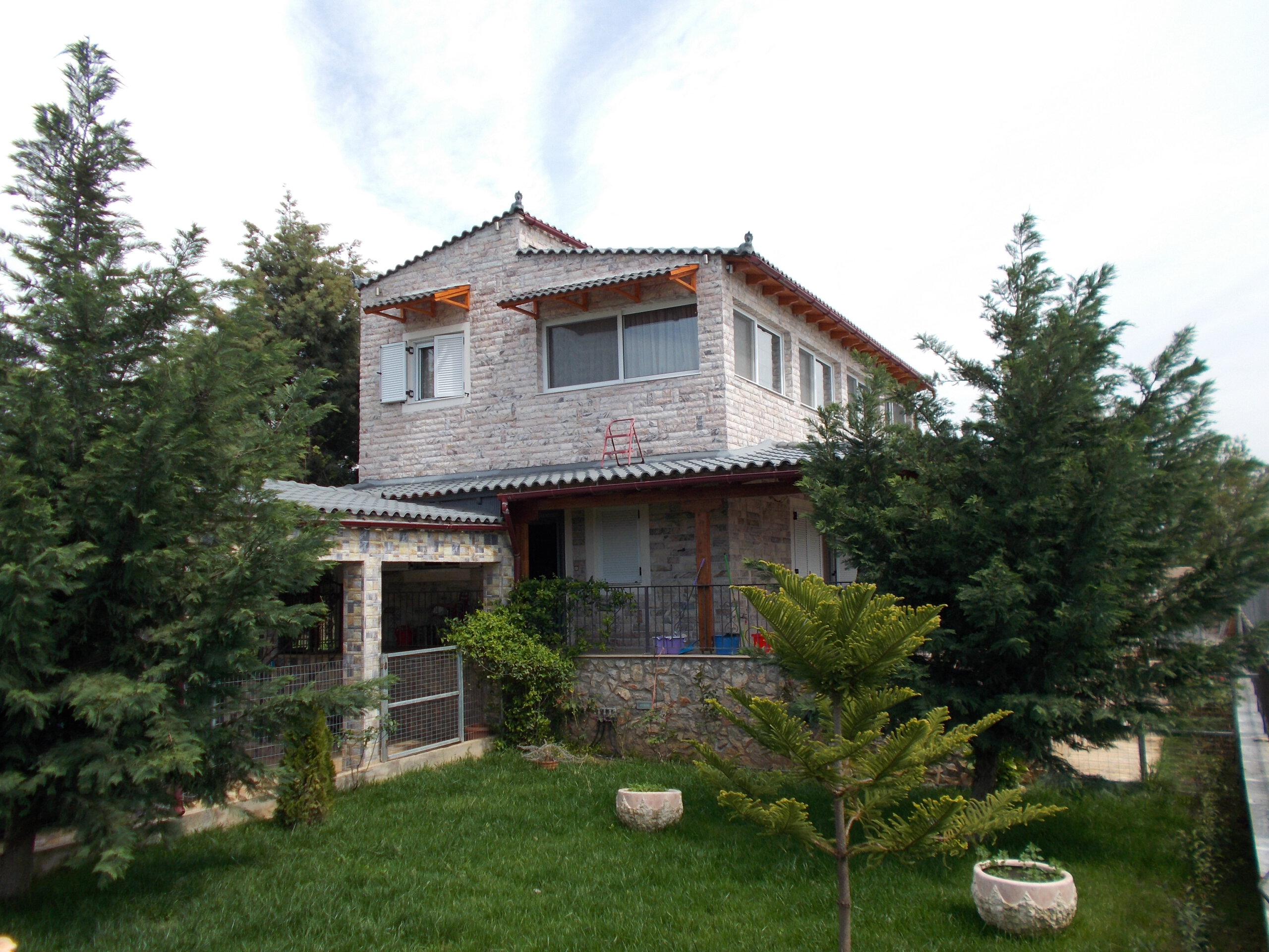 Covered balcony around the house, landscaped garden, automatic irrigation system, BBQ, LED lighting in the plot space timer, storage and boilers in the basement, solar water heaters, security entrance door in the lot, railings, stone cladding throughout the house. There is a landline phone, Wi-Fi, three-phase streaming. The property has passed completely legal.