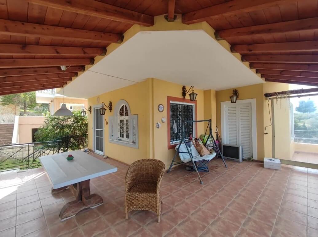 Villa with a view, an internal staircase, a built-in barbecue stand and a garden.