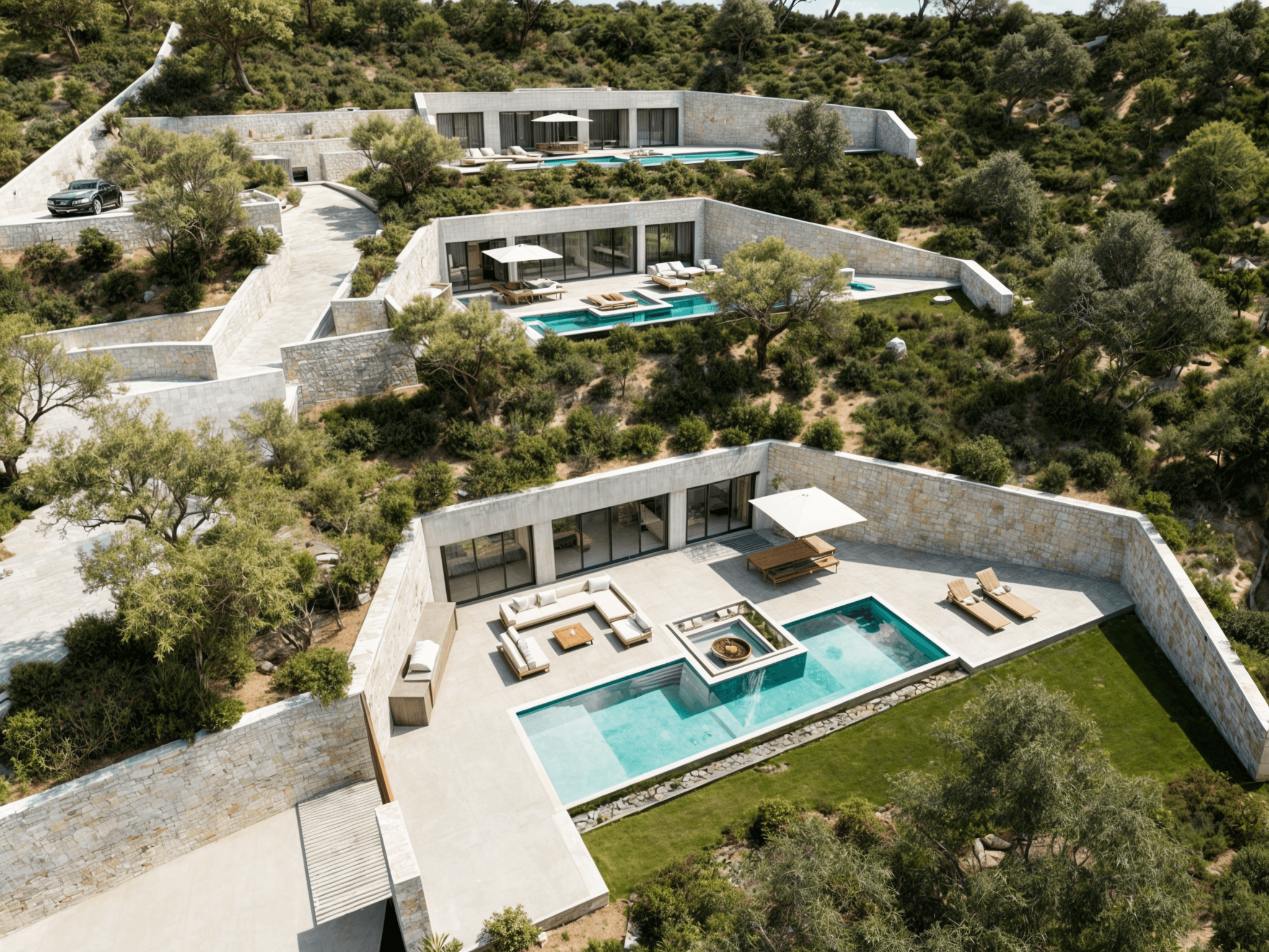 בשטח ייבנו 3 וילות מפוארות, כ125 מ"ר בנוי על שטח אדמה של כ1,200 מ"ר לוילה.